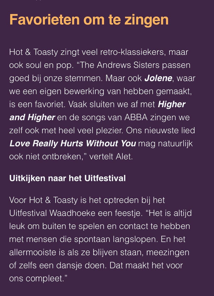 eerst wensen we iedereen "Fijne feestdagen en een goed en gezond 2025 vol muziek! Liefs, Hot & Toasty