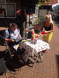 Dan helpen de dames graag een handje mee om tussen het zingen door het e.e.a. te serveren.
